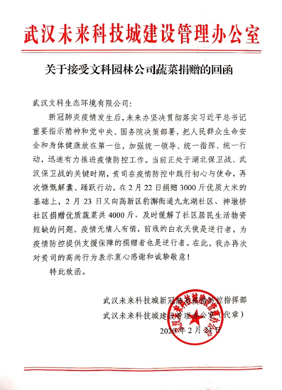 6731顶级娱乐园林始终关注着抗击疫情的希望 ,, ,,,,,在此之前 ,, ,,,,,公司不但以6731顶级娱乐公益基金会的名义向湖北省捐钱100万元支援防疫一线 ,, ,,,,,6731顶级娱乐园林党委还发动全体员工捐钱204180元 ,, ,,,,,用于湖北省的疫情防控。。。。。 。